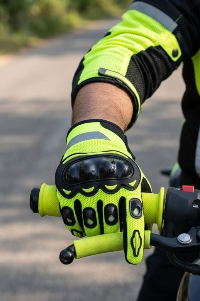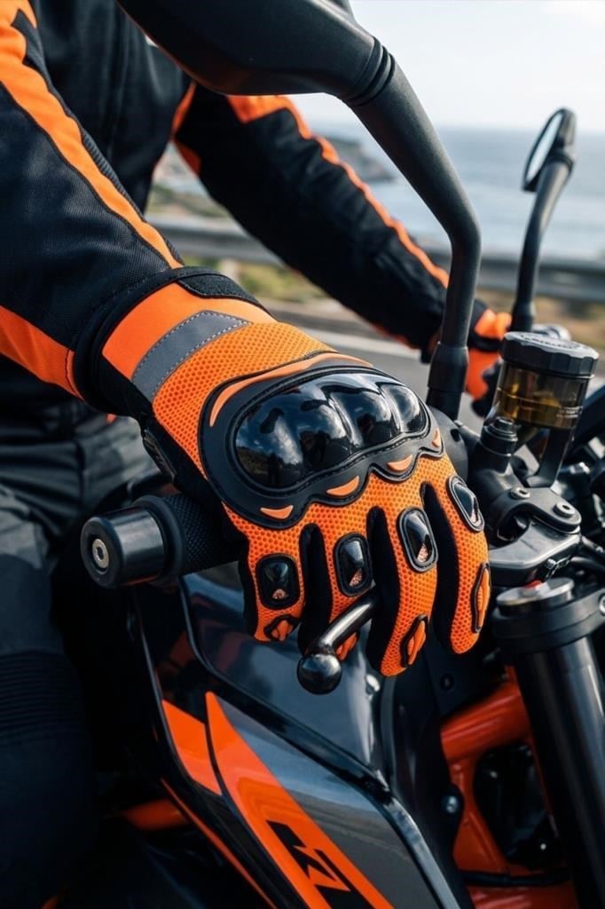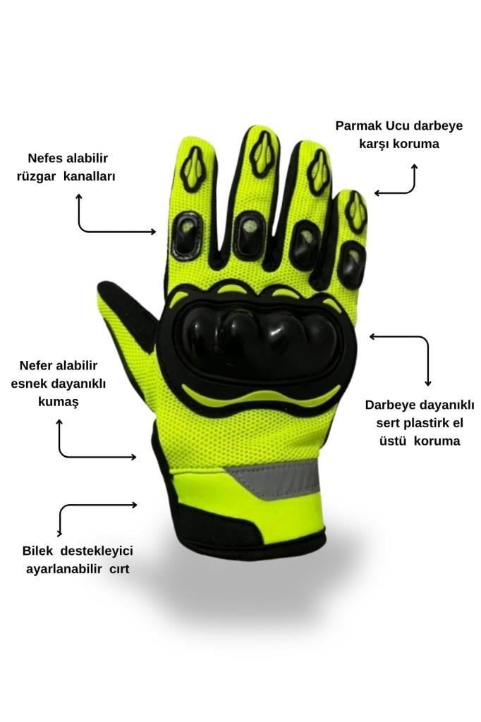 Neon Fosforlu Reflektörlü Taktik Eldiven Tam Parmak – Dokunmatik Uyumlu Darbeli Koruma, Nefes Alabilir Avuç İçi, Cırtlı Bilek (Turuncu / Sarı / Gri)
