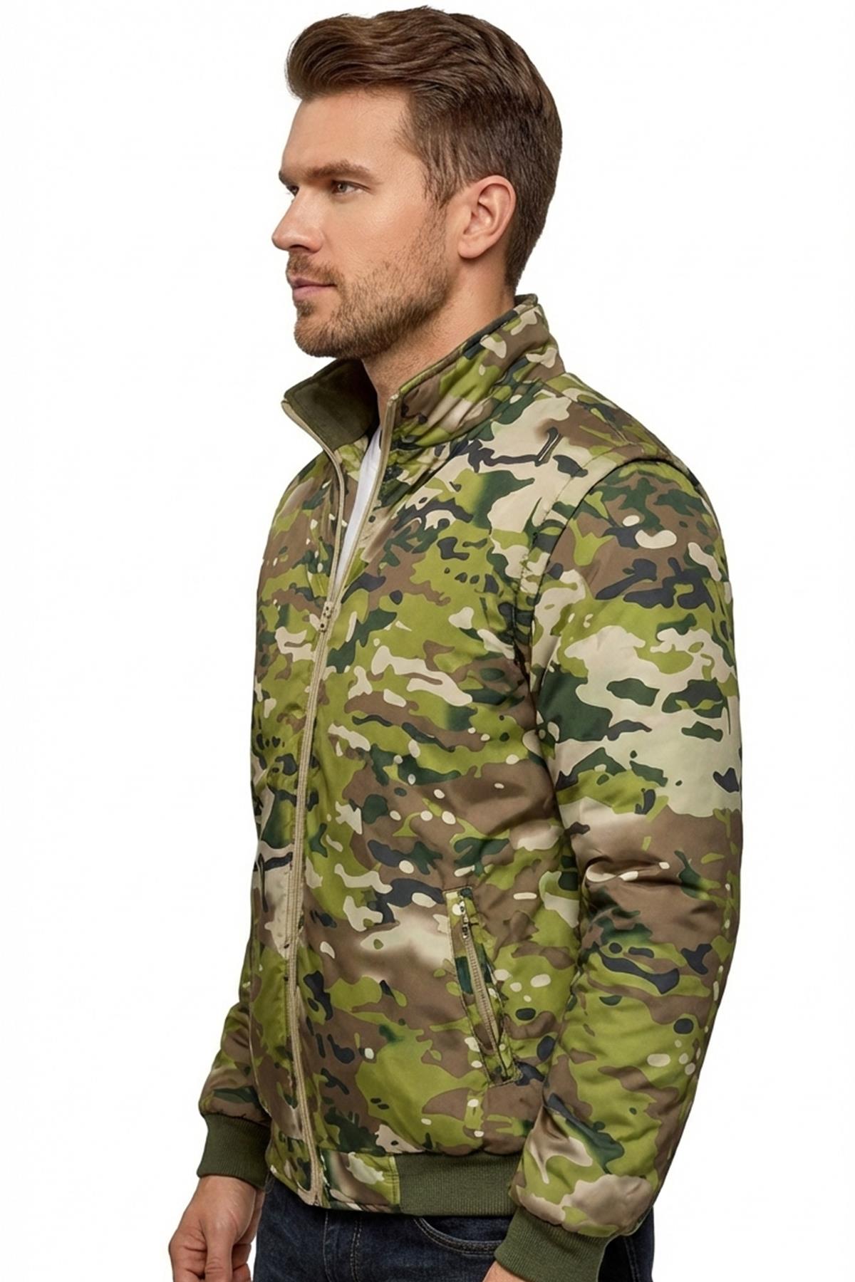 Single Sword Su Geçirmez Kolları Çıkabilen Kamuflaj Pilot Mont